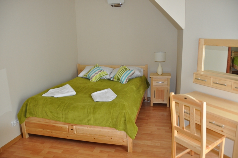 Frisch bezogenes Doppelbett für erholsamen Schlaf