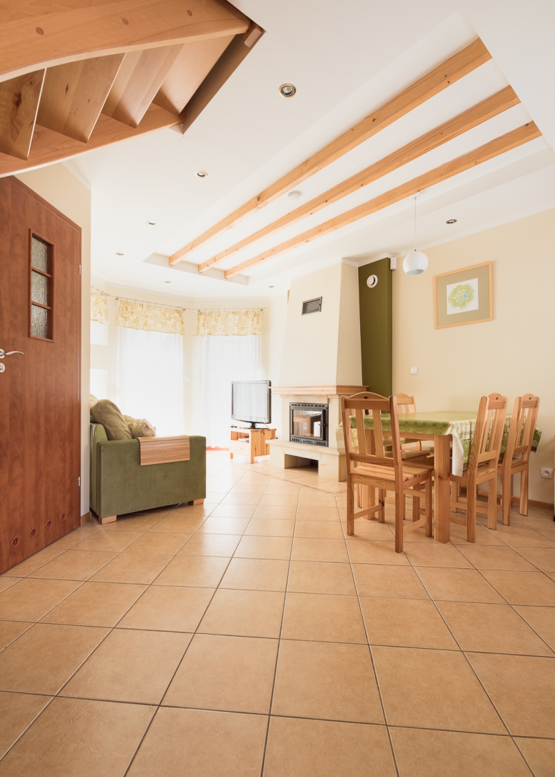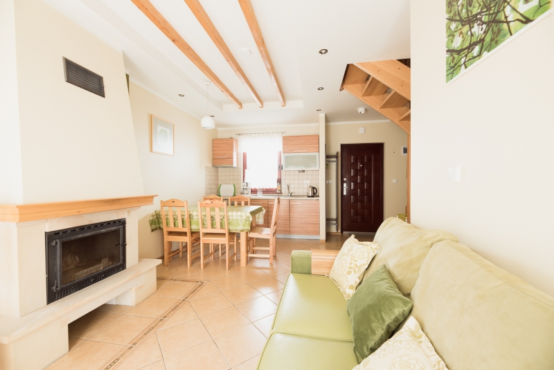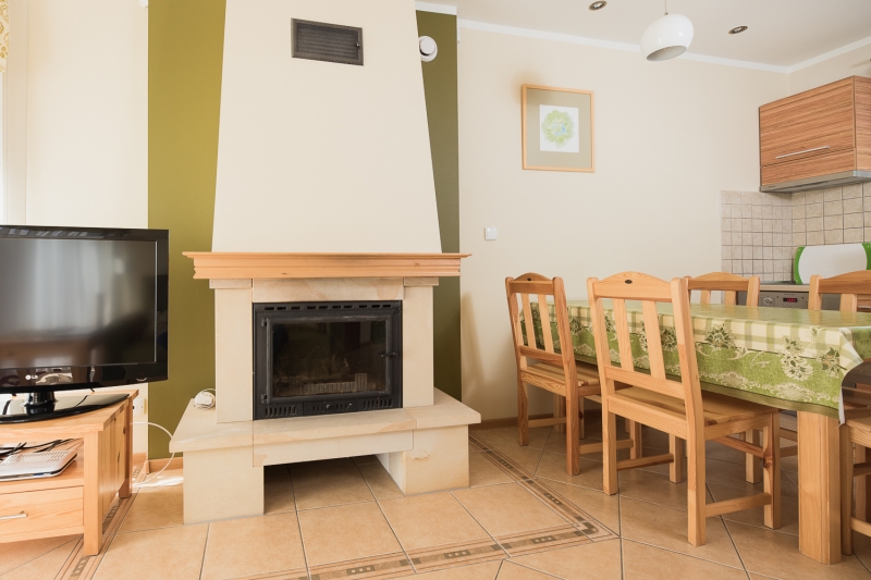 Im Winter wird es gemütlich: Ein Kamin und eine angenehme Fußbodenheizung schaffen eine warme, behagliche Atmosphäre – ideal für ruhige Abende nach einem Spaziergang am Meer.