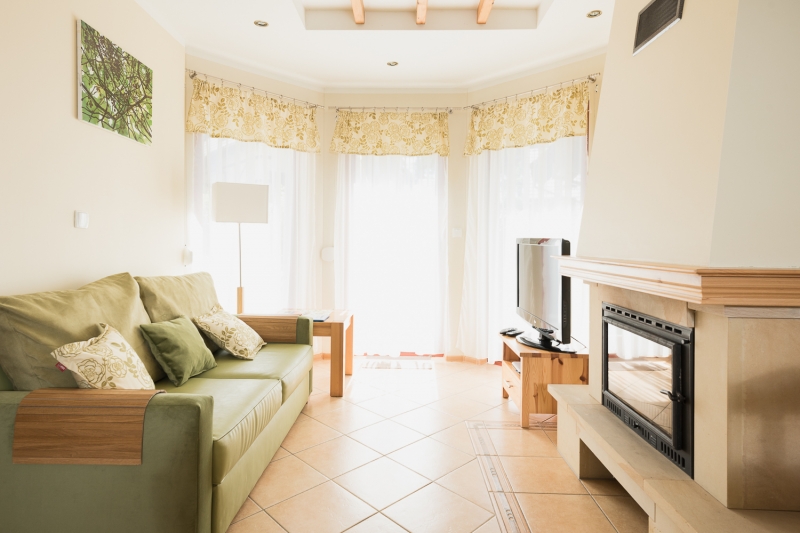 Im Winter wird es gemütlich: Ein Kamin und eine angenehme Fußbodenheizung schaffen eine warme, behagliche Atmosphäre – ideal für ruhige Abende nach einem Spaziergang am Meer.