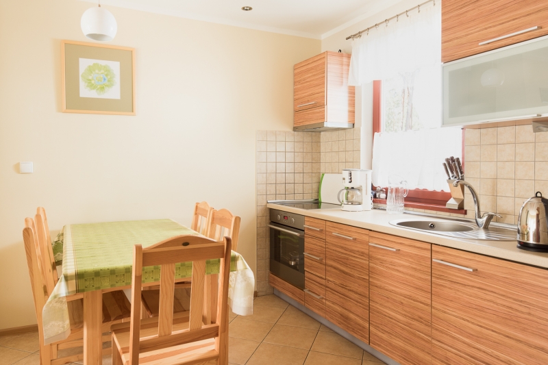 Moderne Ferienwohnung mit offener Wohnküche und Terrasse – ideal für 2–4 Personen.
